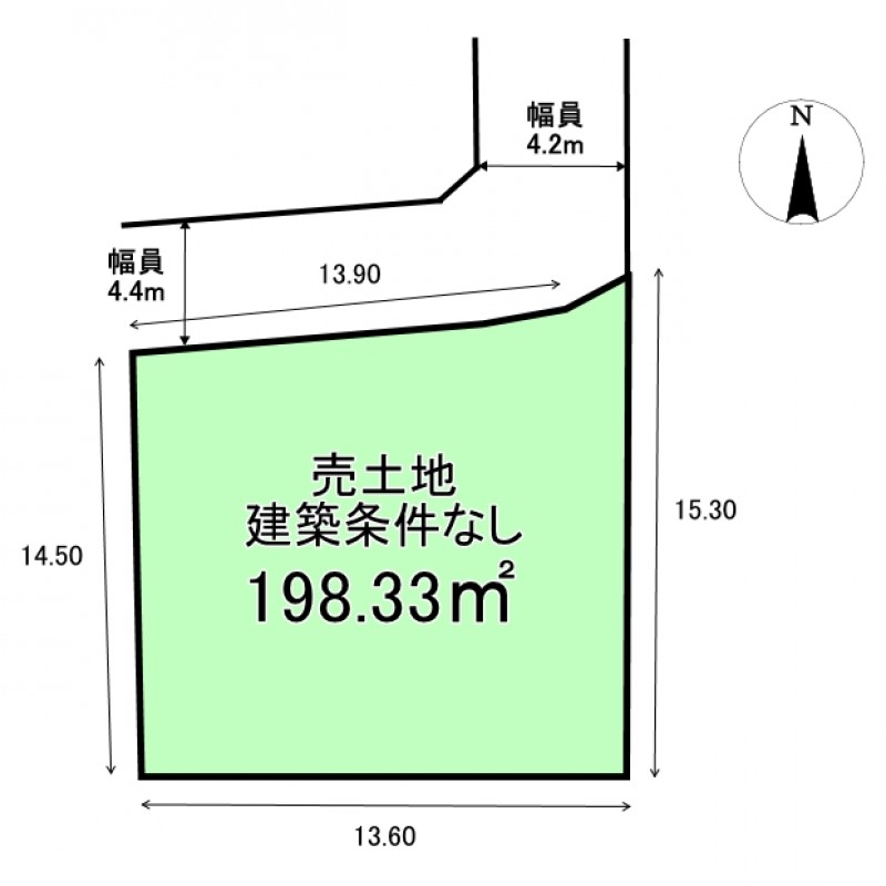 | 接道状況 | 一方道路 方位北 幅員4.4m 公道 接面13.9m 舗装あり | ||