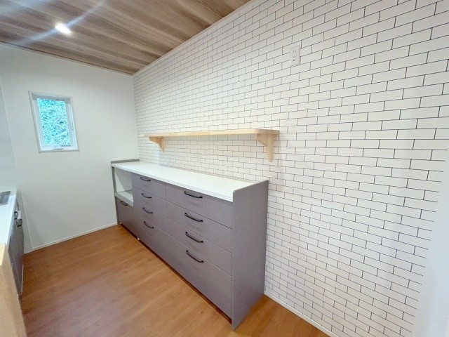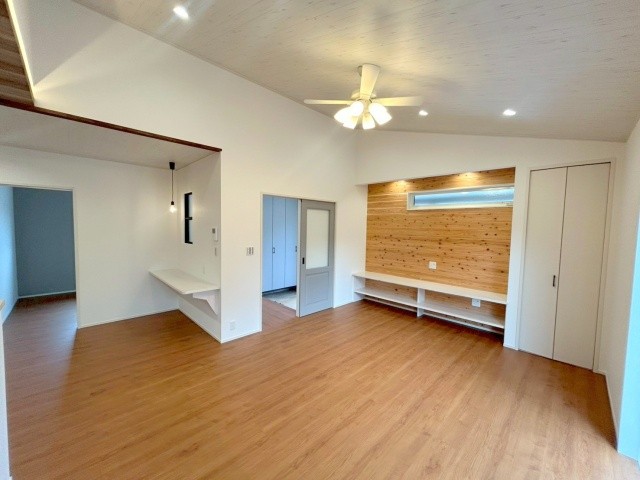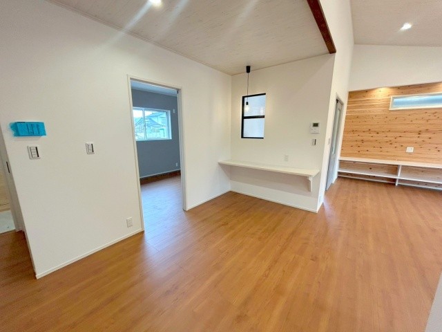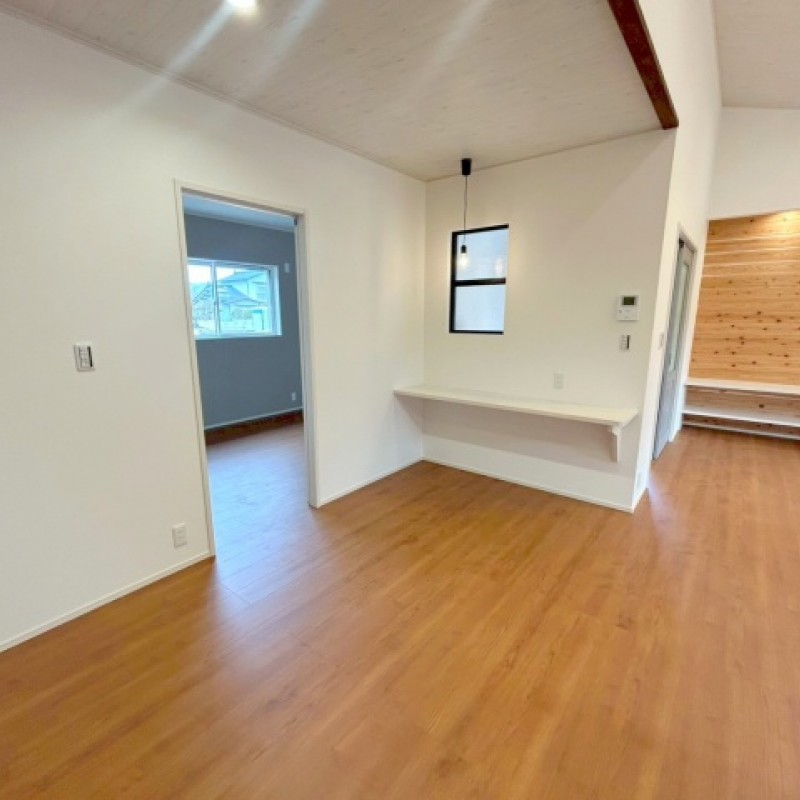 自然が豊かな非常に落ち着いたエリアの新築戸建て♪ゆとりのある23帖の広々としたリビングはご家族で寛げる住空間。吹き抜けで明るく開放的なリビングです♪カースペース4台付!
